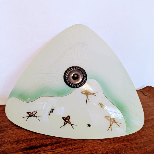 French 1950's Glass Ceiling Light Art Deco Jade Green